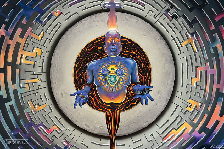 I am captivated by the fluidity of time and the underlying symmetry of the natural world. This series represents a reflection on those themes, composed through the interplay of mediums, opposing elements, and symbolism. They are each impressions of our shared, human relationship with time, and our deep, primal, and spiritual connection to nature.